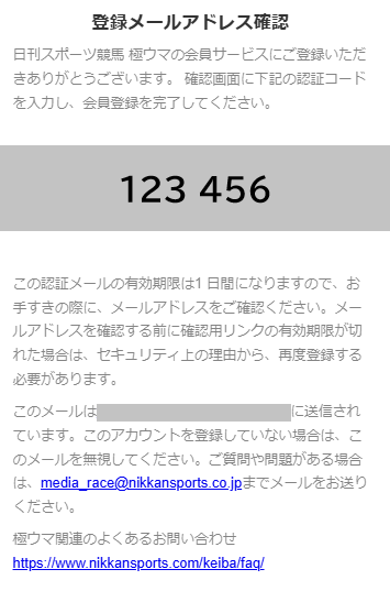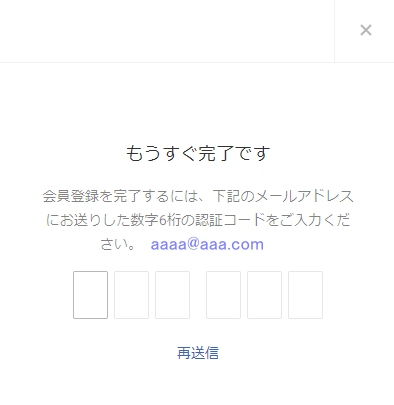 ステップ1でご登録いただいたメールアドレス宛に6桁の数字の認証コードが届きます。
