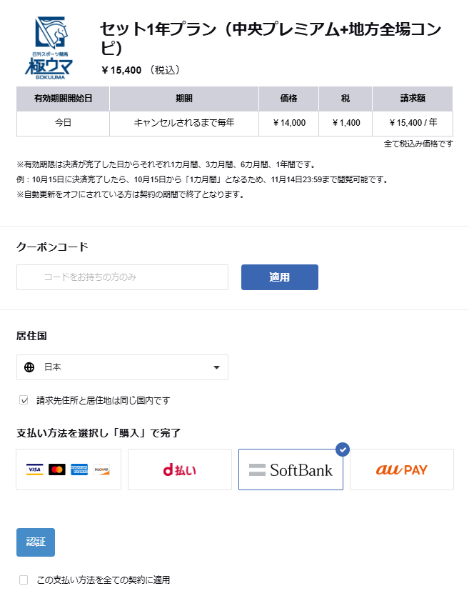 クレジットカードまたはニッカンIDキャリア決済(ドコモ、ソフトバンク、auの携帯料金と合算で支払い。格安SIMの方も系列キャリアで利用可能です)をご利用いただけます。